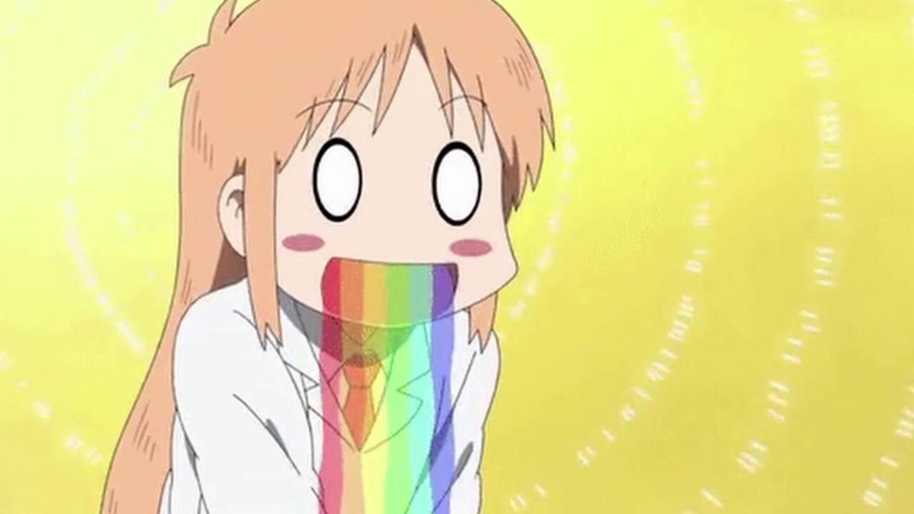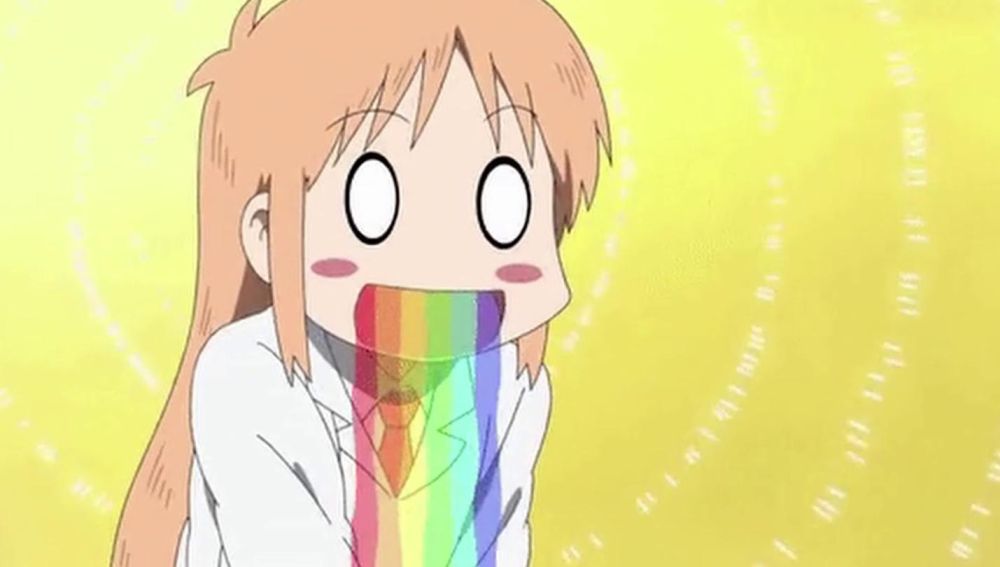 Uno de los gestos más extendidos en el anime hace referencia a vomitar arcoiris; sí, literalmente.