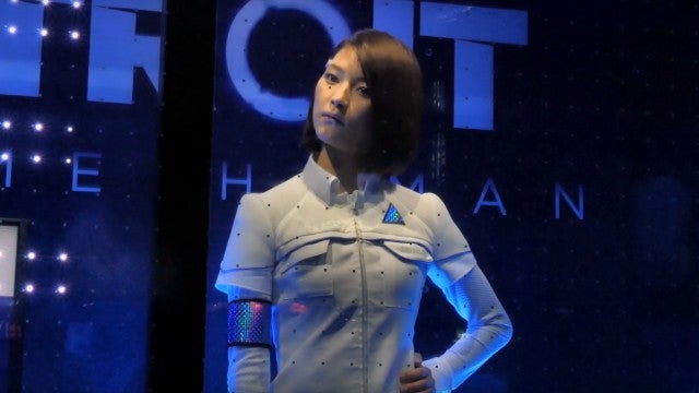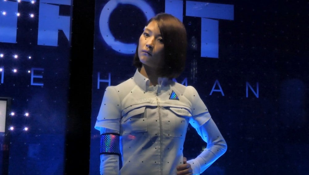 Pero, ¿se trata realmente de un androide? Desde luego en caso de que fuera una chica preparada para hacer las veces de robot y con ello la campaña promocional de Detroit: Become Human, se tomó muy en serio su papel. Gestos, maquillaje y expresiones faciales hacen que la línea de la duda entre si es humana o androide sea francamente fina.