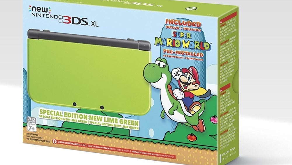 Dicho esto, y disponible sólo para Amazon en su división americana por 199 dólares, llega a la cadena de tiendas New Nintendo 3DS XL decorada con motivos de nada más y nada menos que Yoshi. El verde lima se adueña pues de esta nueva edición que además incluye para más señas la obra maestra de las plataformas Super Mario World, un auténtico juegazo de los 16-bits.