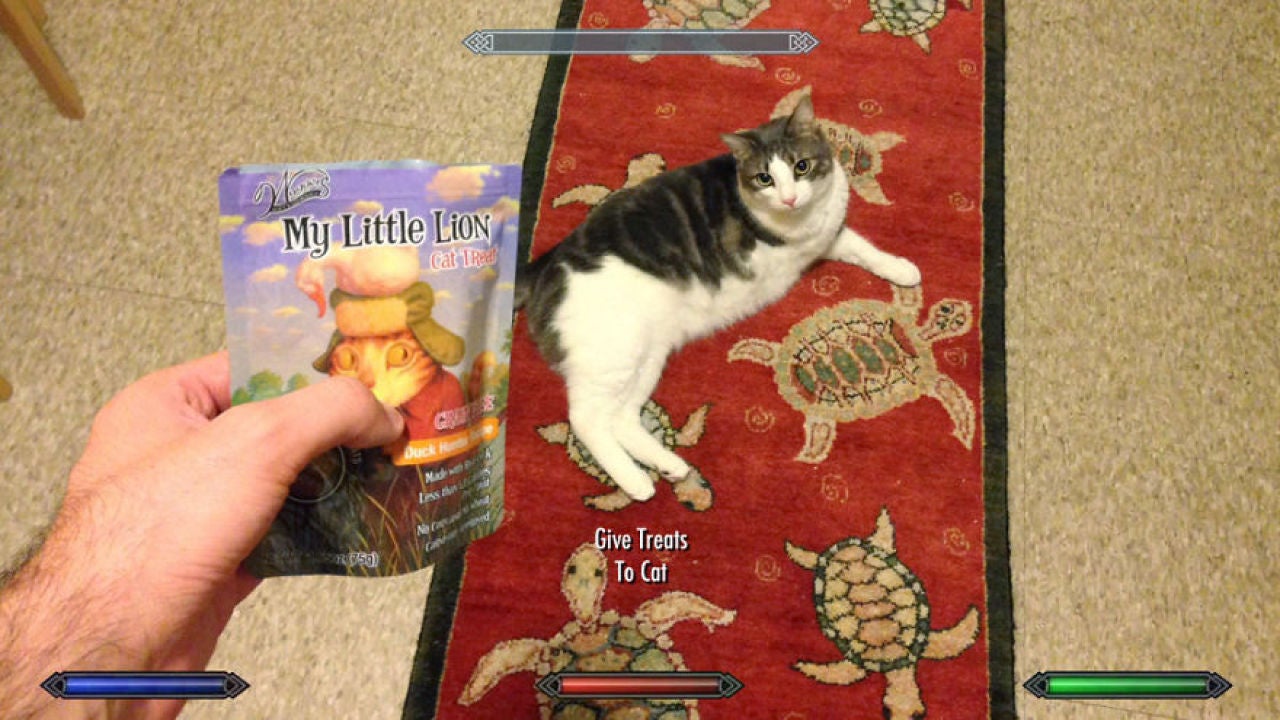 El resultado habla por sí solo ya que Adam ha adaptado a la perfección la interfaz del popular videojuego de Bethesda en diferentes fotografías. Éstas recogen momentos como ir al baño, poner comida a su gato, elegir ropa para salir a la calle, comprar café, coger el metro y un largo etcétera que ha quedado representado de forma excepcional.