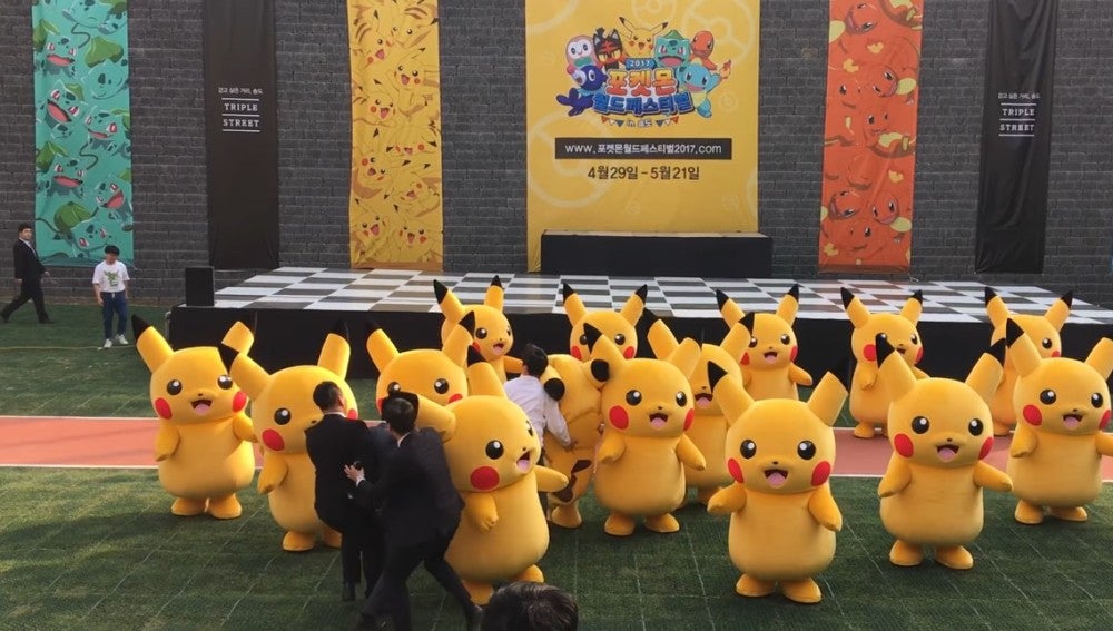 Pero, ¿qué querría un espontáneo que se sube al escenario para esta a escasos milímetros de una de persona disfrazada? Viajamos hasta Corea del Sur, más concretamente Incheon. Durante el Pokémon World Festival un desconocido se subió en plena actuación de varios Pikachu para abrazar a uno en especial.