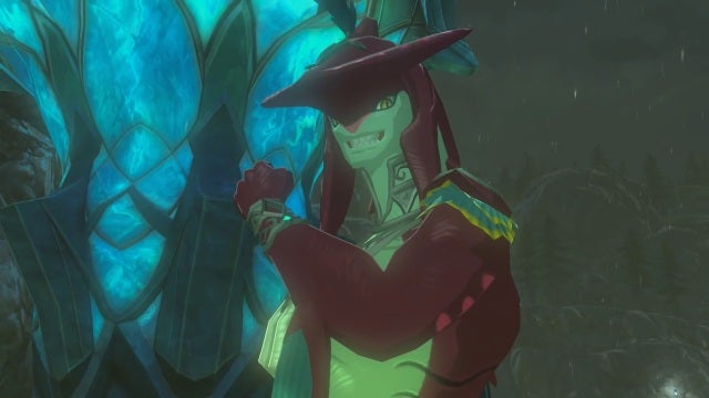 Primero tenemos que subir a la planta alta del palacio Zora para luego saltar lo más cerca posible de una cascada, haciendo uso también de la paravela. Escalaremos esta cascada con nuestro nueva vestimenta Zora y llegaremos a otra zona con una cascada, que de nuevo debemos ascender. Hecho esto, tendremos que subir lo que nos queda de montaña a pie y veremos a un monstruo con forma de minotauro... ni se os ocurra intentar atacarle, a menos que tengáis mucha vitalidad, os matará de un solo ataque.